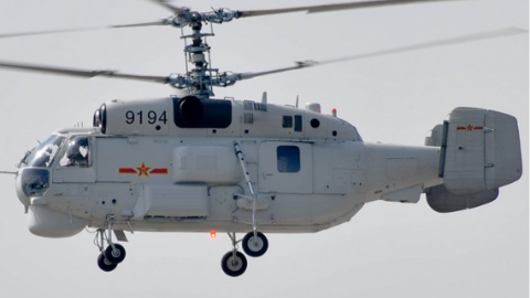 解放军卡28反潜直升机巡航台海 身边还有4架歼16